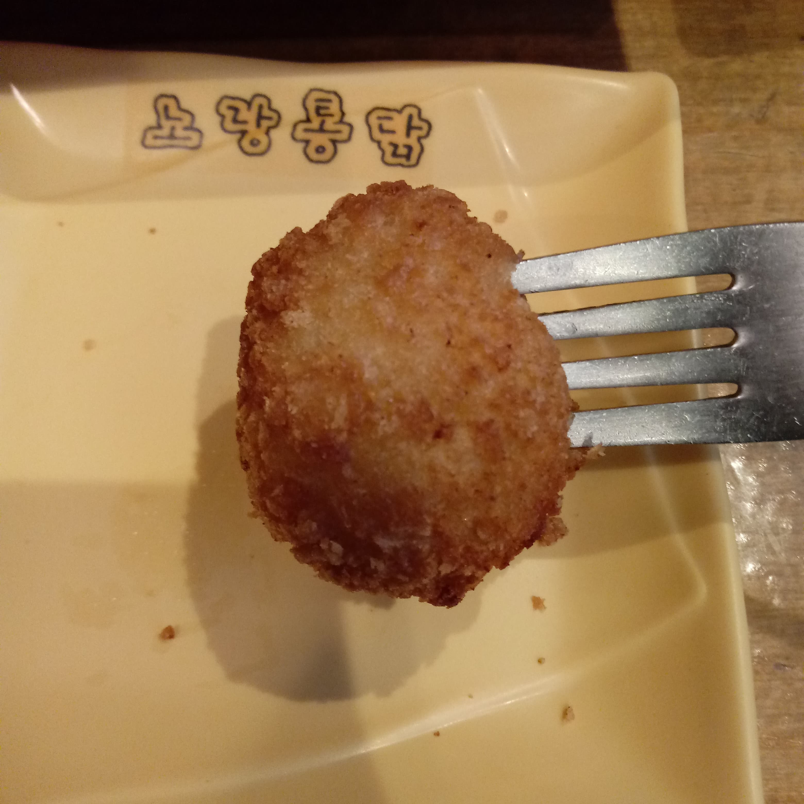 하지만 속이 비어있지는 않았습니다. 하지만 치즈가 우리가 생각하는 그런 점성 높은, 그런 치즈는 아니었습니다. 국물 같은 그런 치즈였습니다. 일반적인 치즈볼에 쓰이는 그런 치즈가 아니라, 그러니까 치즈볼에 쓰여야 하는 치즈가 아니라 다른 음식에 쓰여야 하는 그런 치즈였습니다.
