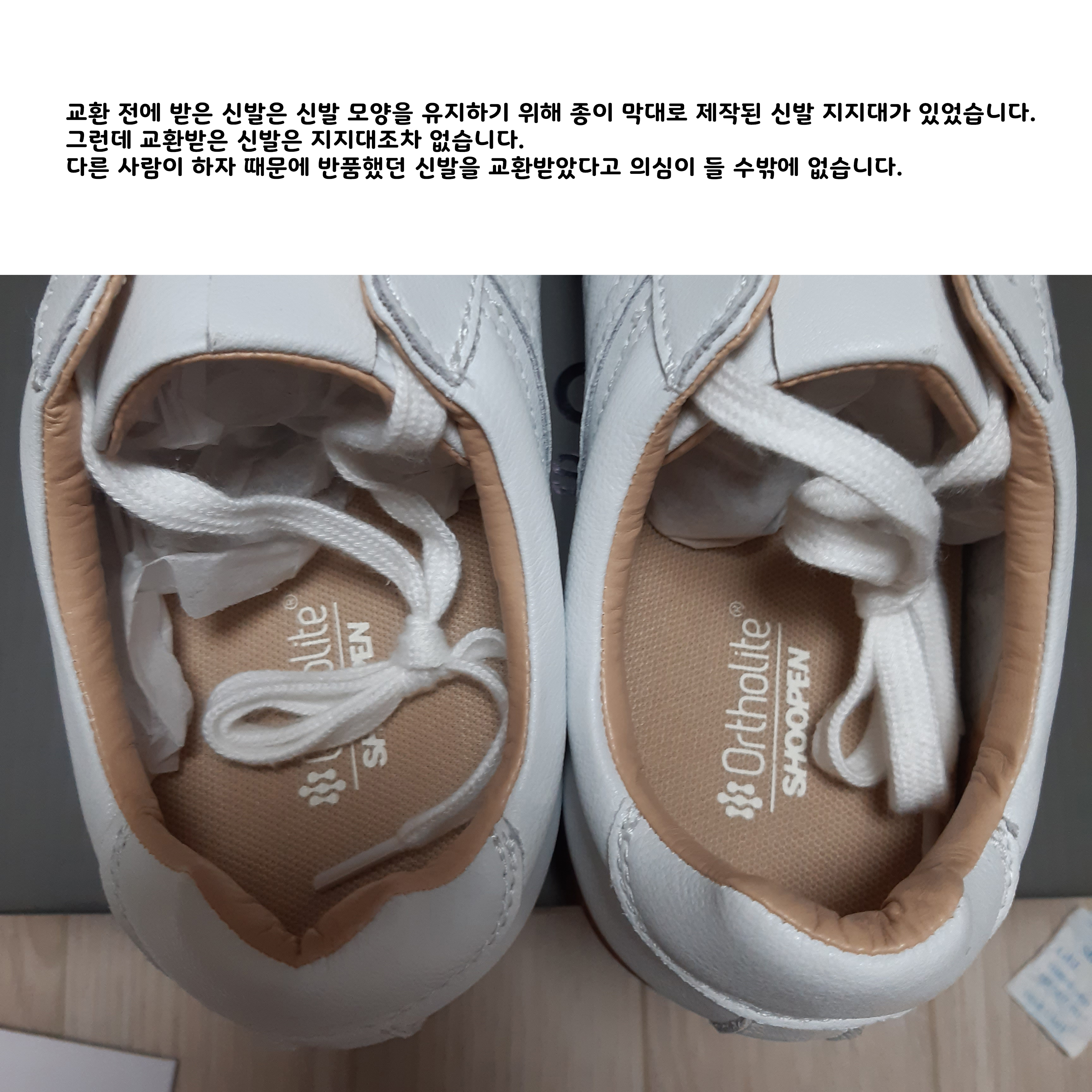 그리고 누가 이미 신어봤던 신발을 보낸 것인지, 슈펜이 새 신발 보낼 때 신발 모양을 유지해 주는 종이 막대 지지대도 없었습니다.